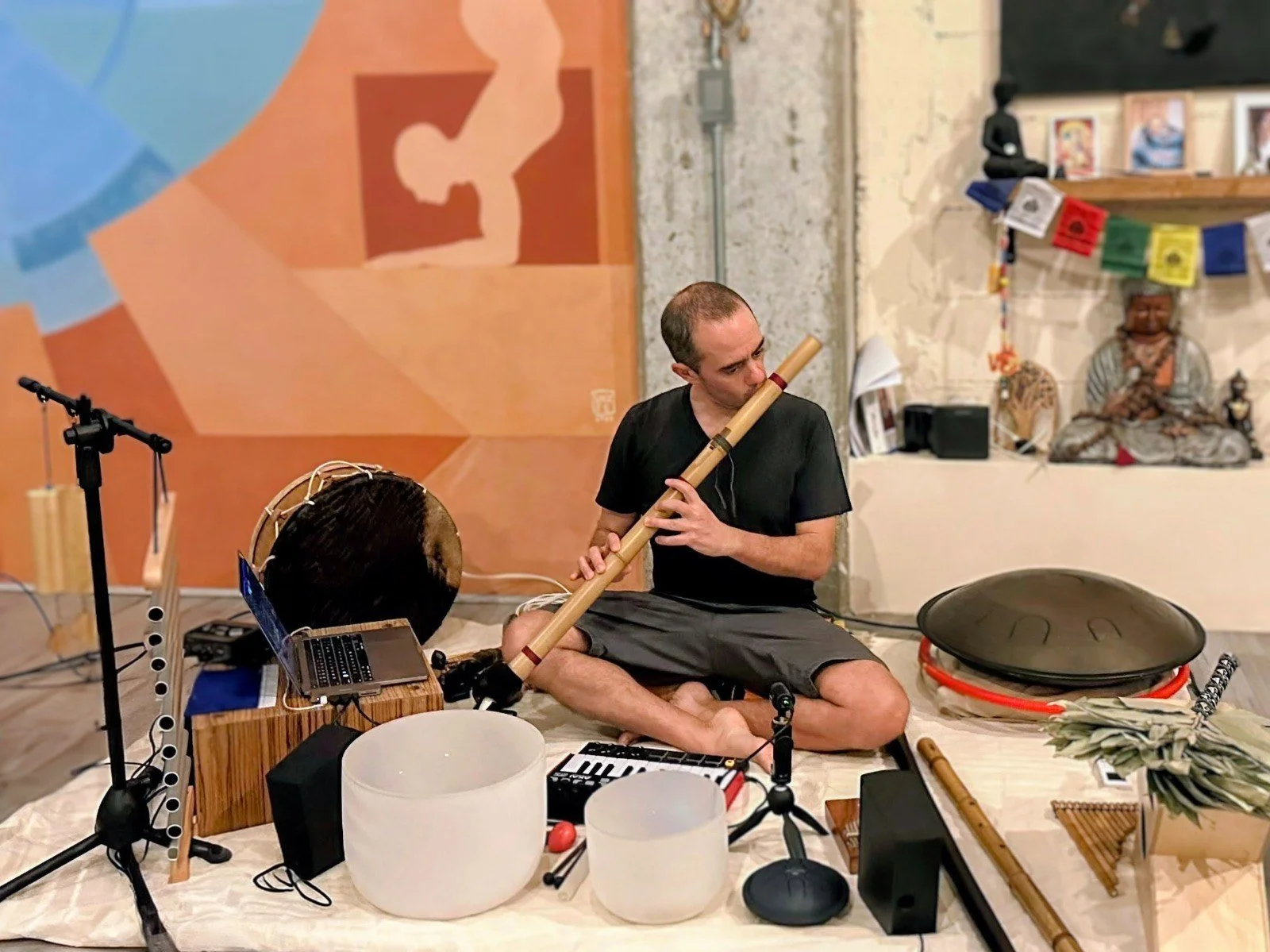 Through ancestral instruments, digital textures, and live soundscapes, we explore sound as a path toward mindfulness and deep listening.