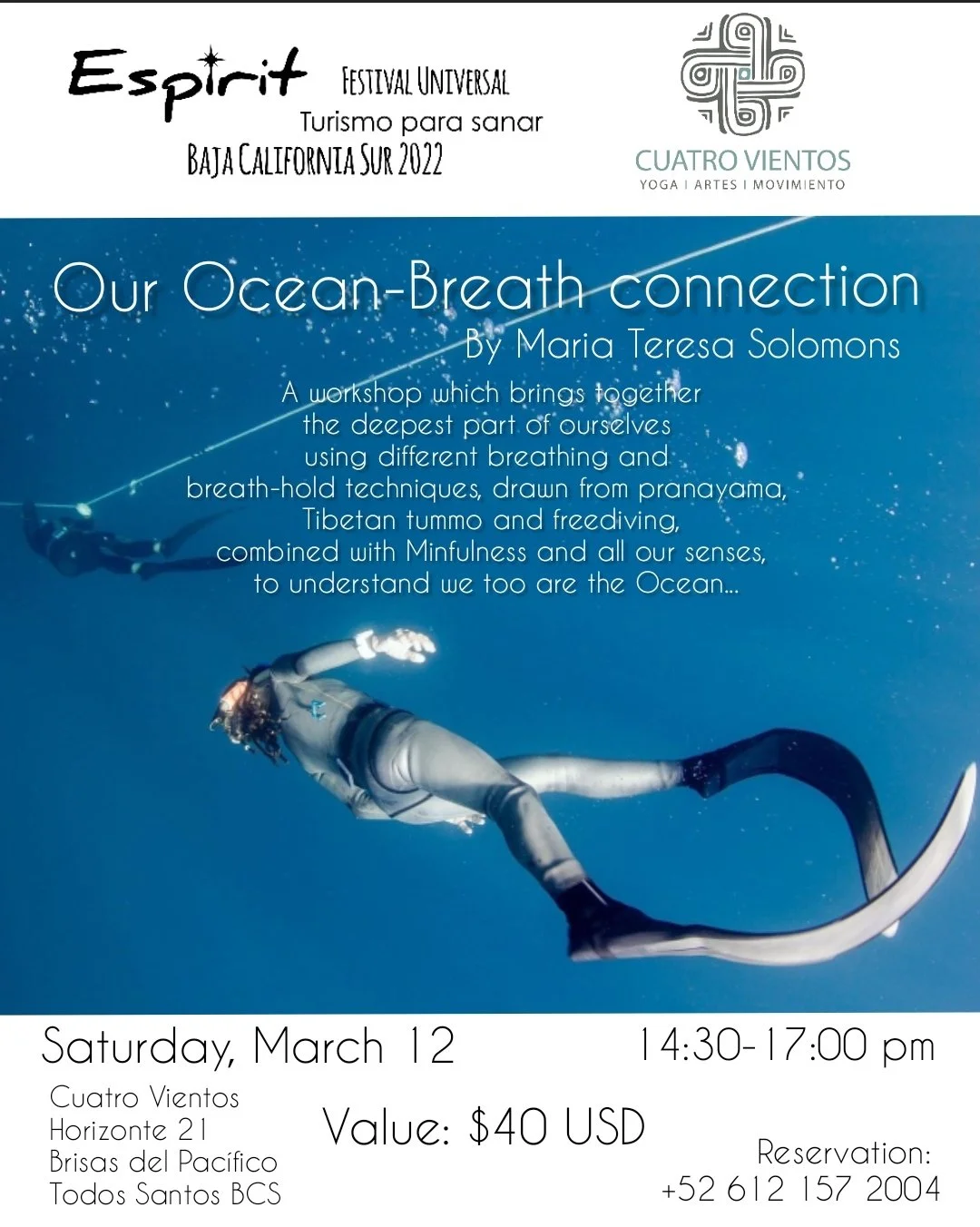 A workshop that brings together the deepest part of ourselves using different breathing and breath-hold techniques, drawn from pranayama, Tibetan tummo and freediving, combined with Mindfulness and all our senses, to understand we too are the Ocean
