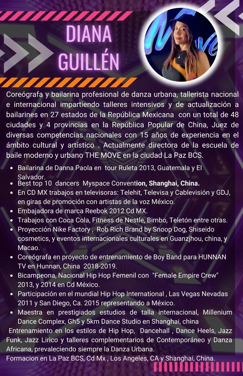 With the purpose of creating a network of workshops that enrich urban culture and test body and dance skills, this *Urban Dance Workshop* is for all the people of Todos Santos who enjoy dancing and learning from new experiences. Our mission is to promote recreational activities that promote leisure time in the people of the community and take advantage of it by developing different activities and disciplines that allow them to learn and work both in mind and body.